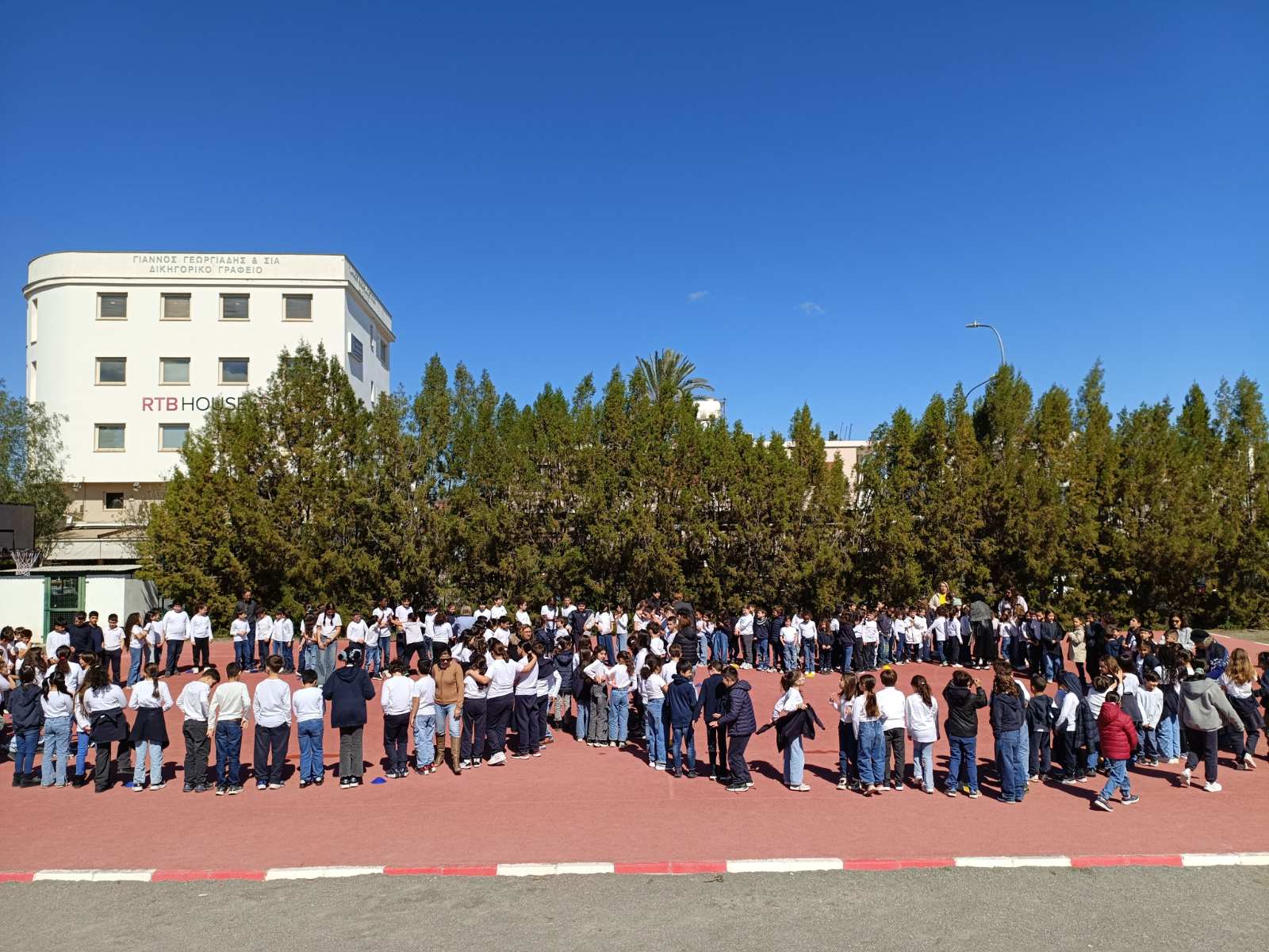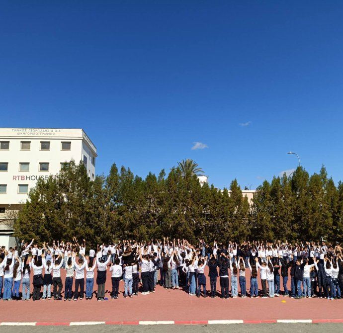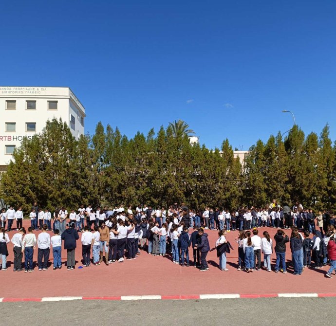 Παρασκευή, 27/02/26: Επειδή η 28η Φεβρουαρίου, είναι η μέρα αφιερωμένη στις σπάνιες γενετικές παθήσεις, όλα τα παιδιά του σχολείου (ΚΑ, ΚΒ), καθώς και οι εκπαιδευτικοί φόρεσαν jeans, λέξη που παραπέμπει στα genes, δηλαδή στα γονίδια, και άσπρη φανελίτσα. Στο γήπεδο στάθηκαν όλοι ο ένας δίπλα στον άλλο, σχηματίζοντας μια τεράστια καρδιά, θέλοντας έτσι να δείξουμε την αγάπη μας στα παιδιά που φέρουν εκ γενετής αυτά τα σπάνια γενετικά νοσήματα.
