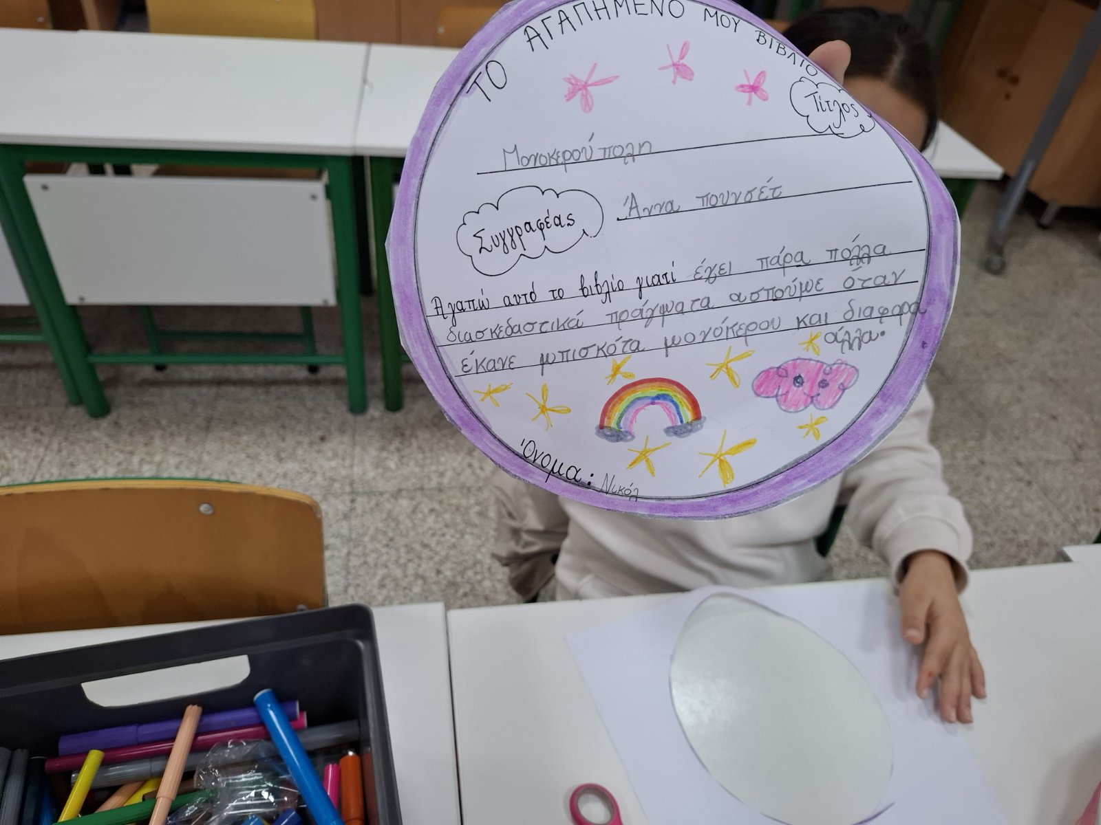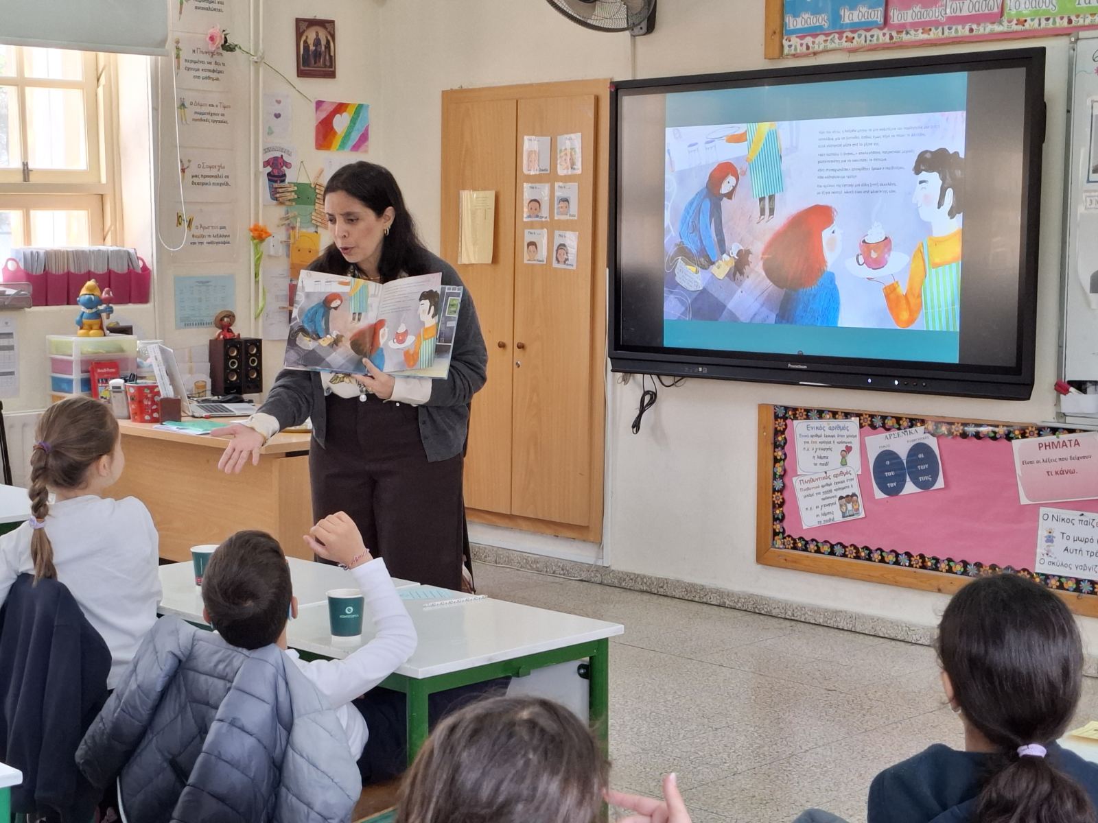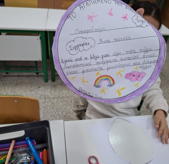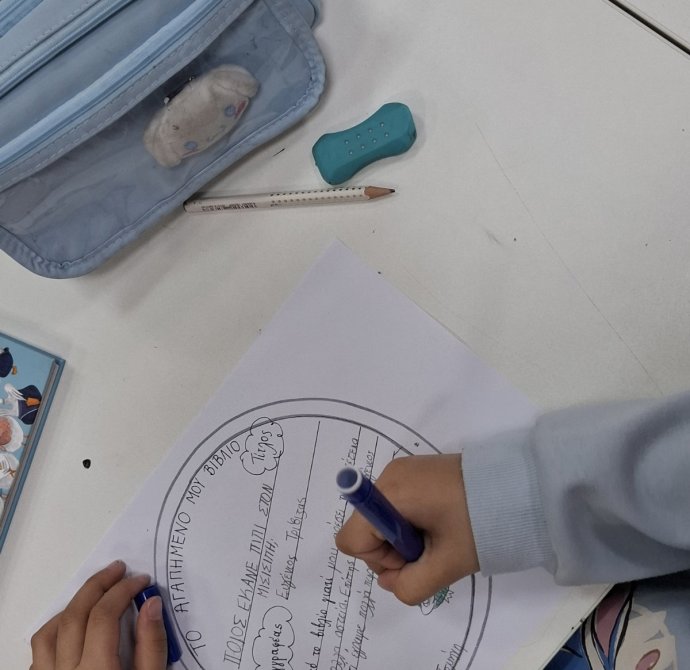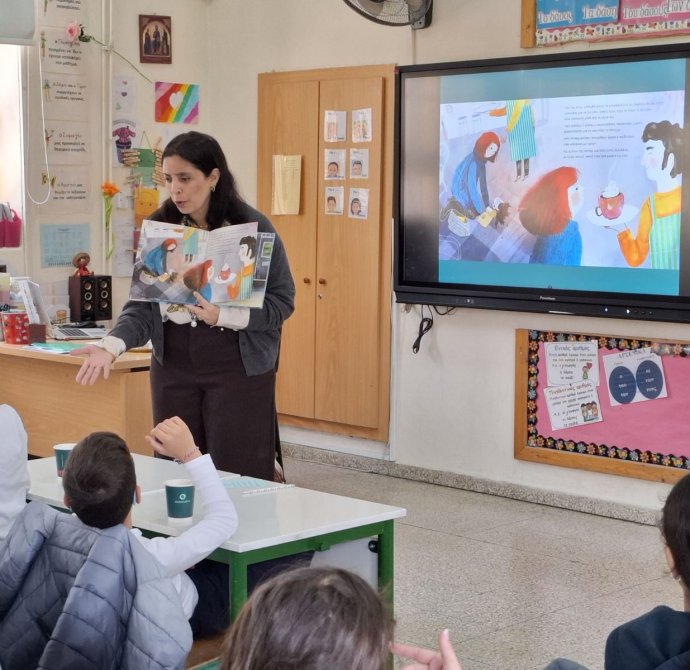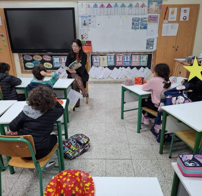 Παρασκευή, 06/03/26: Η καταξιωμένη συγγραφέας, Μαρίνα Μιχαηλίδου Καδή, παρουσίασε στα παιδιά της Γ' τάξης το παραμύθι της "Ζεστή Σοκολάτα", ενώ ταυτόχρονα τα παιδιά απολάμβαναν ένα ζεστό ρόφημα, τι άλλο από ζεστή σοκολάτα, την οποία ετοίμασε ο Σύνδεσμος Γονέων. Στο τέλος της παρουσίασης, η συγγραφέας υπέγραψε το παραμύθι στο κάθε παιδί ξεχωριστά που το είχε προπαραγγείλει.