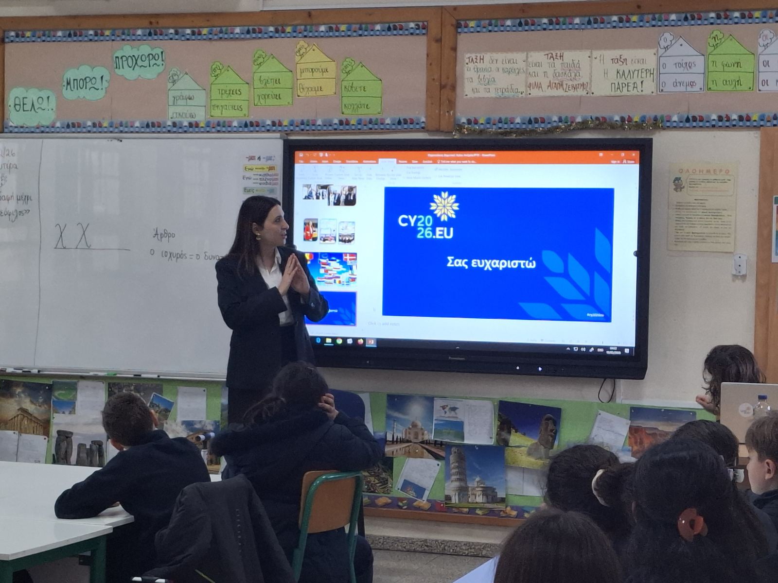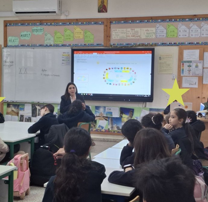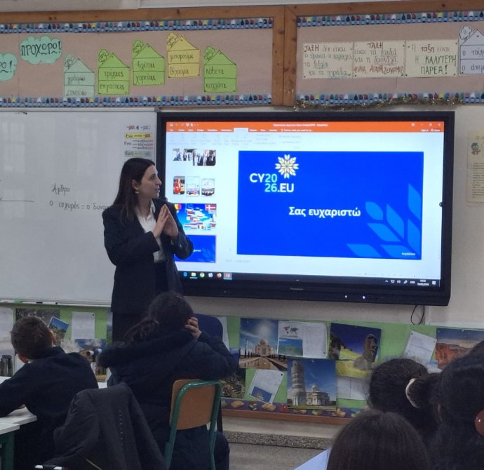 Δευτέρα, 16/02/26: Η Yφυπουργός για Ευρωπαϊκά θέματα, κ, Μαριλένα Ραουνά, επισκέφθηκε το σχολείο μας και μίλησε στα παιδιά της Γ' τάξης σχετικά με την ανάληψη της προεδρίας του ευρωπαϊκού συμβουλίου το πρώτο εξάμηνο του 2026, από την κυπριακή δημοκρατία.