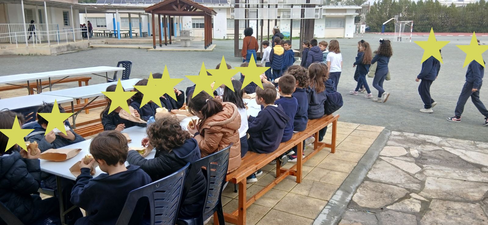 Πέμπτη, 12/02/26: Μια διαφορετική, διασκεδαστική και άκρως απολαυστική Πέμπτη είχαν τα παιδιά και όλο το προσωπικό του σχολείου, καθώς δεν ήταν μια οποιαδήποτε μέρα, αλλά η Τσικνοπέμπτη. Αν και ο καιρός το πρωί ήταν βροχερός, ωστόσο μετά το πρώτο διάλλειμμα η βροχή σταμάτησε και τα παιδιά συμμετείχαν σε παραδοσιακά παιχνίδια, όπως "αυκά, αυκά πουλώ τα", "πατατοδρομίες", "αερόστατο", "πατατάρης" κ.ά. Στη συνέχεια, τα παιδιά κάθησαν στα μεγάλα τραπέζια που στήσαμε στην μπροστινή μας αυλή και απόλαυσαν τα νόστιμα σουβλάκια που με τόση αγάπη, μεράκι και κόπο έψησε ο Σύνδεσμος Γονέων, τον οποίο και ευχαριστούμε θερμά. Φυσικά, δεν μπορούσαν να λείψουν από μια τέτοια μέρα και τα πουρέκκια!!!!. Ευχάριστη έκπληξη ήταν η παρουσία δύο εκπαιδευτικών και μουσικών, οι οποίοι παίζοντας βιολί και μαντολίνο, τραγούδησαν παραδοσιακά τραγούδια και μας παρέσυραν σε χορό όλους τους μαθητές και το προσωπικό του σχολείου.